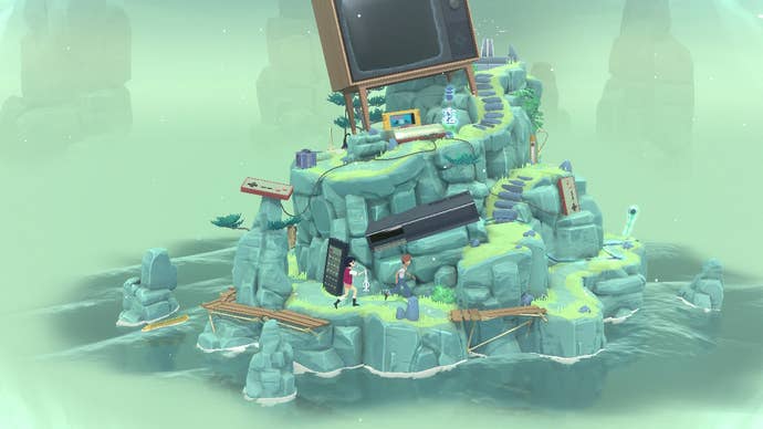 The earnestness of its story touches everything in The Gardens Between, from what litters its levels to how the characters lightly hold hands from time to time when they catch up with another. It's a little nauseatingly too sweet at times for my cold heart, but mechanically it did something I didn't quite expect: it continually surprised me with new ways to play around with its time manipulation. While its first few levels might've seemed bare in puzzles, as it went on it never simply relied on backtracking through levels to unlock something to move onwards again. Most levels posed a unique challenge, such as that keyboard code dilemma and other more complex surprises.
