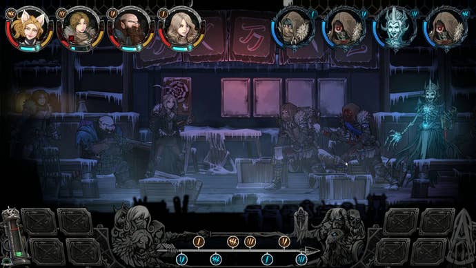 Vambrace: Cold Soul begins a lot like Darkest Dungeon, with the protagonist finding out about a secret past from the will of a dead relative. In this case, Evelia Lyric inherits a the eponymous vambrace from her adventurous father. Her dad's final wish is for her to take the bracer to the lost city of Icenaire. There, a band of survivors trapped in an eternal wall of ice fight against the undead army of the King of Shades. The bracer can open holes in the cursed ice, which allows Lyric and a chosen band of adventurers to journey into the rest of the city and reclaim it from the undead.